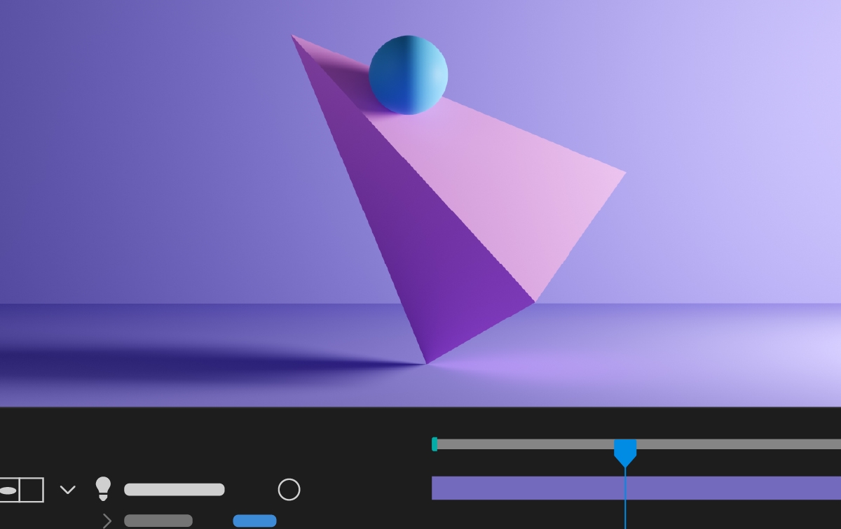 Modifique facilmente os efeitos de iluminação e sombras de uma camada de modelo 3D, e selecione animações incorporadas por meio do painel “Propriedades”.