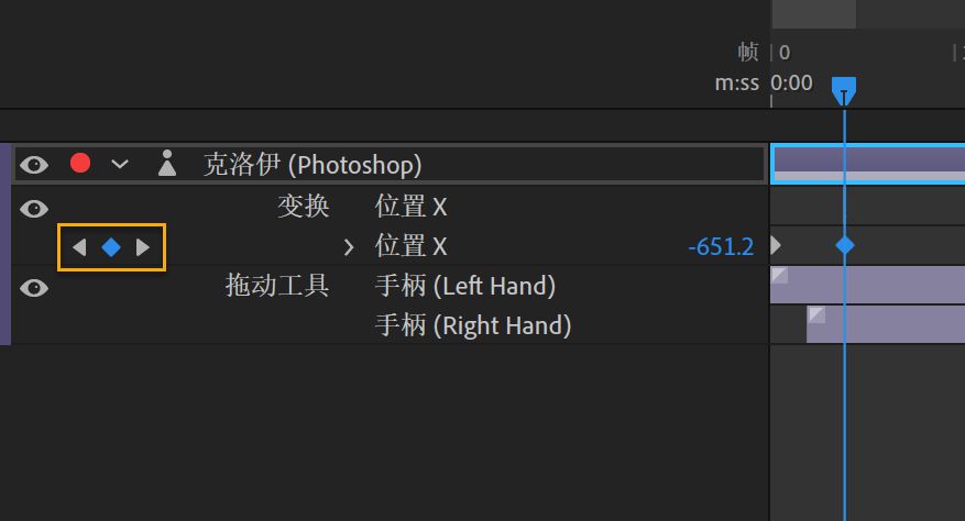 在时间轴中,您可以使用关键帧导航器在关键帧之间移动,以设置或移除关键帧。