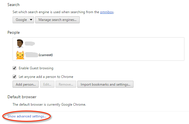 Scrolle auf der Seite ganz nach unten und klicke auf Erweiterte Einstellungen anzeigen.
