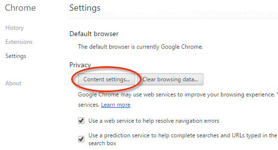 Unter Datenschutz klicke auf die Inhaltseinstellungen.