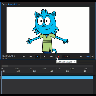 Starten Sie die Aufnahme, indem Sie im Szenenfenster auf die Schaltfläche „Aufnehmen“ klicken.