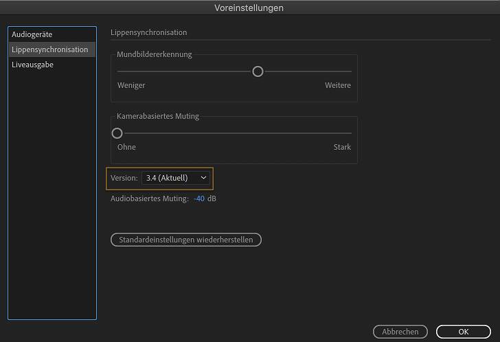 Die aktuelle Version (3.4) des Lippensynchronisationsmoduls verbessert die automatische Lippensynchronisation und das Timing der Mundbewegungen (Mundbilder). Es ist weiterhin möglich, mit älteren Versionen zu arbeiten, und die Mundbilderkennung kann in den Einstellungen für die Lippensynchronisation sowohl für Live-Performance als auch für das Berechnen aus Szenenaudios optimiert werden. Die Aktualisierung verbessert die Darstellung von F- und W-Oo-Mundbildern, wenn erwartet, und es werden weniger sich wiederholende L- und M-Mundbilder während der Überblendungen angezeigt. Profitieren Sie von einer verbesserten Erfahrung, bei der weniger Korrekturen an berechneten Lippensynchronisationen nötig sind.
