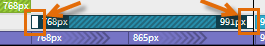 Die Haltepunktwerte werden auf den Leisten angegeben: min-width links und max-width rechts auf der Leiste.