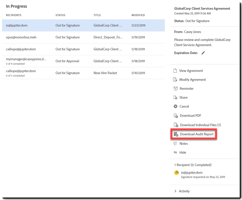 - Tilføj alternativ modtager – tilføjelse af en alternativ modtager inkluderer den nye modtager, hvilket efterlader den originale modtager på plads og i stand til at fuldføre aftalen