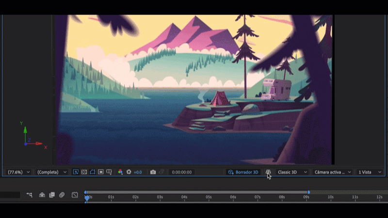 - En el panel Cronología, habilite el Conmutador 3D para las capas que desee manipular en tres dimensiones.