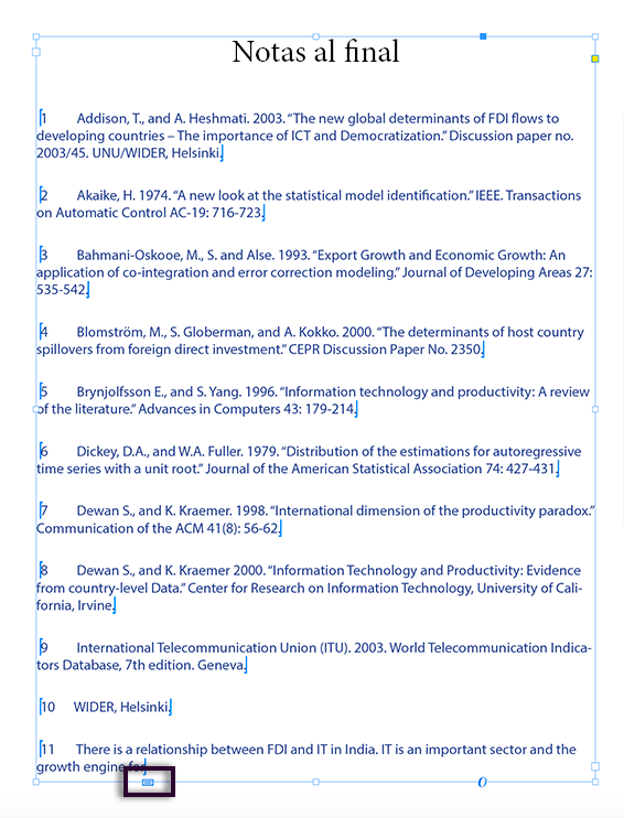 - Las notas al final se crean en un nuevo marco que cuenta con un adorno