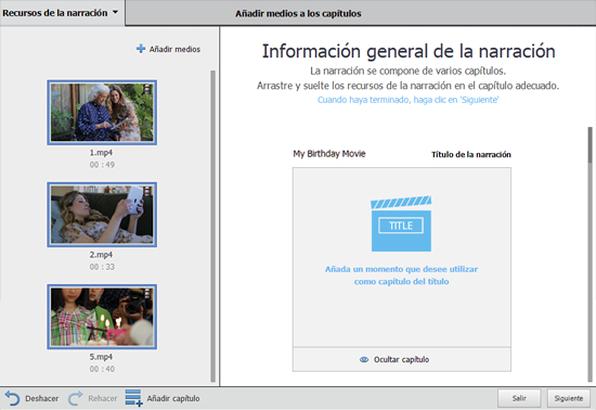 Ahora, puede organizar los vídeos y las fotografías en capítulos para clasificarlos de forma más estructurada. La narración consta de varios capítulos.