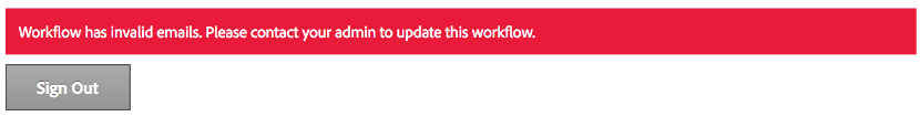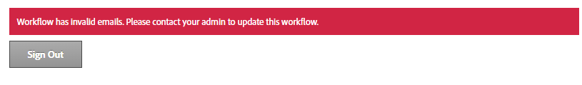 Si la cuenta está configurada para que utilices la experiencia moderna de Enviar y se inicia un flujo de trabajo problemático, los usuarios verán un banner rojo que indica el error: