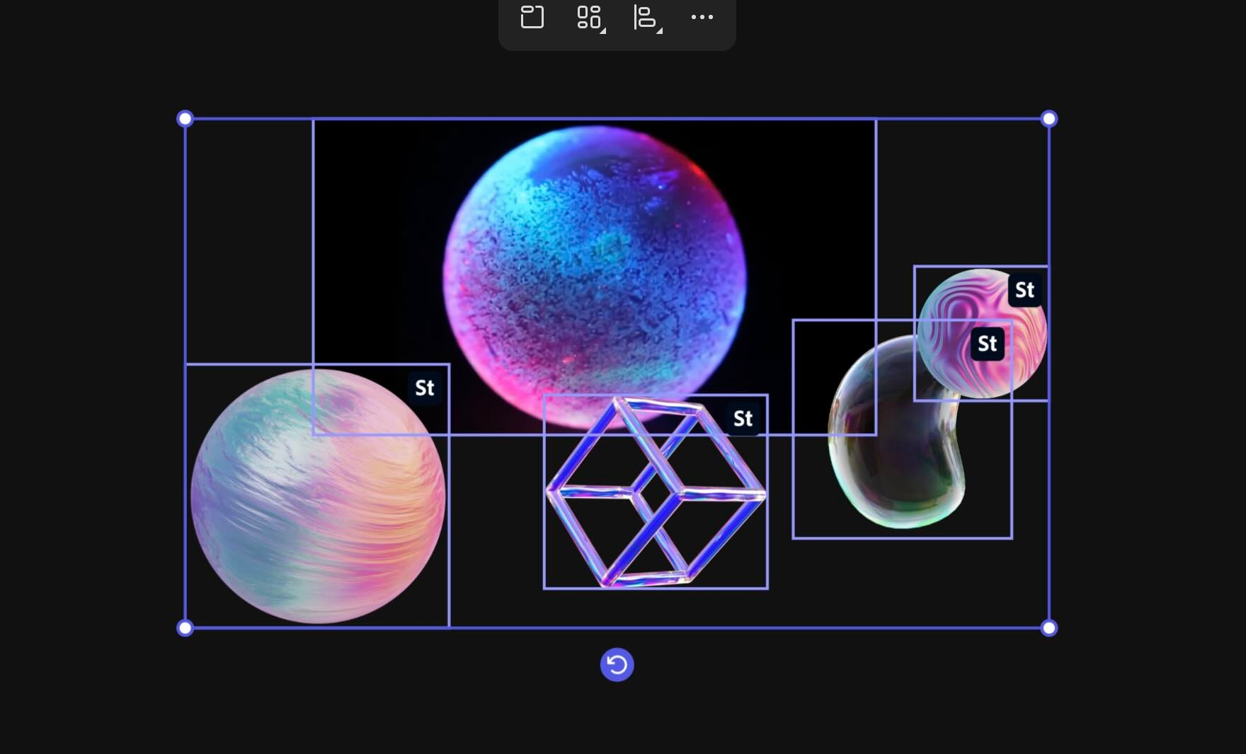 Valitse piirtoalueelta useita elementtejä, kuten kuvia, videoita tai muotoja.