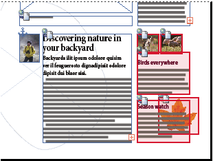 InCopy-käyttäjät näkevät samalla aukeamalla kaikki määritetyt kehykset ja artikkeliin kuulumattomien muiden kehysten kaikki sisällöt. InCopyssa artikkelin ulkopuolella olevien kehysten sisältö ei ole muokattavissa ja näkyy vain Sivuasettelu-näkymässä.