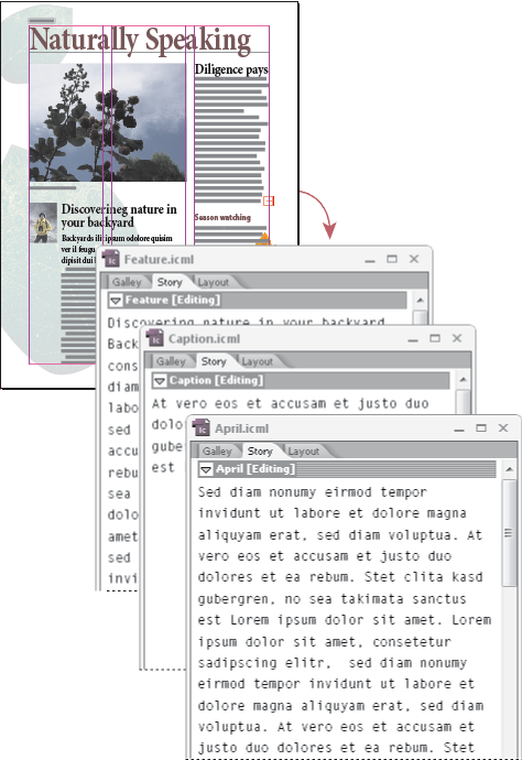 Tämä vaihe sisällyttää viedyn tekstin ja grafiikkakehykset hallittuun prosessiin, jossa ne tulevat InCopy-käyttäjien käyttöön kirjoittamista ja muokkaamista varten.