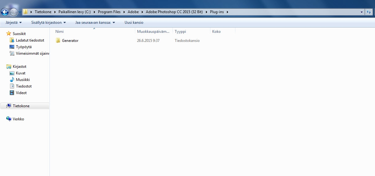 Jos asensit laajennuksen tietyn Photoshop-version sijaintiin, Photoshopin laajennuskansio on täällä: