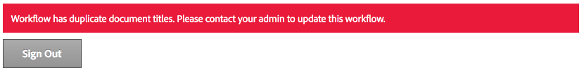 Kun käyttöoikeusalueen ulkopuolinen käyttäjä yrittää ladata työnkulun, asiakirjan liittäminen epäonnistuu ja aiheuttaa tietoturvarikkomuksen.