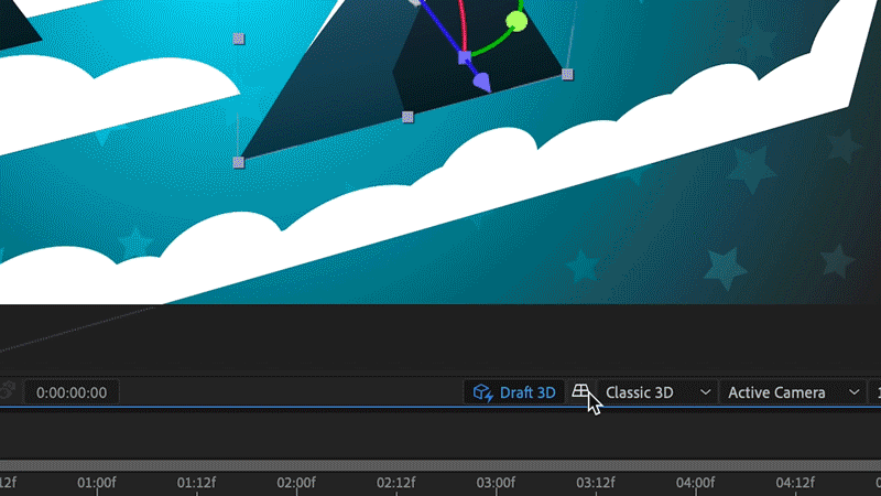 Utilisez l’ensemble d’outils intuitif pour vous aider à concevoir et composer plus rapidement et plus précisément un contenu 3D en mode natif dans After Effects.