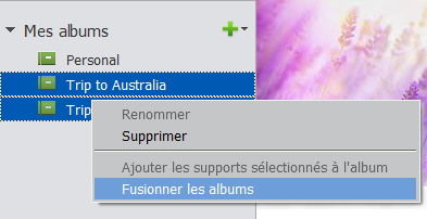 - (Windows) Cliquez avec le bouton droit de la souris et sélectionnez Fusionner les albums.