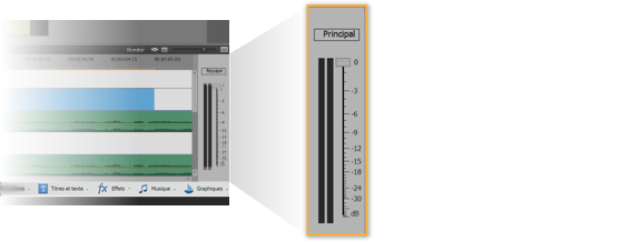 À compter de Premiere Elements 14, l’Audiomètre ne sera plus disponible. La Piste principale fournit les fonctions de l’Audiomètre.