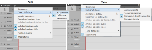 Sélectionnez un style d’affichage pour les pistes audio et vidéo qui vous conviennent, dans les options de menu contextuel.