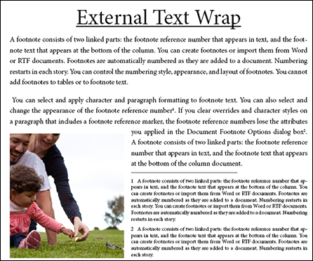 Se è presente un oggetto mobile (non in linea né ancorato) a cui è stato applicato Contorna con testo e se tale oggetto interagisce con il testo di note a piè di pagina, verrà applicato lo scontorno con testo. Il testo scorre in modo dinamico attorno all’oggetto.