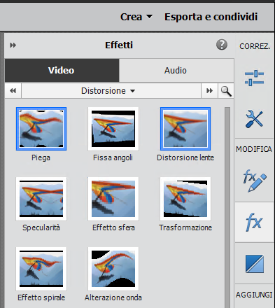 Per correggere la distorsione lente nella clip, trascina l'effetto Distorsione lente dal pannello Effetti nella clip.