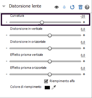 Trascina il cursore Curvatura verso sinistra per rimuovere l'effetto grandangolo.