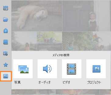 注意:また、テキストバーへのテキスト入力による検索で説明しているように、テキストバーにテキストを入力してメディアファイルを検索することもできます。