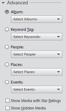 - 星の数でメディアを表示:写真またはビデオの星の数により、メディアを並べ替えて表示します。