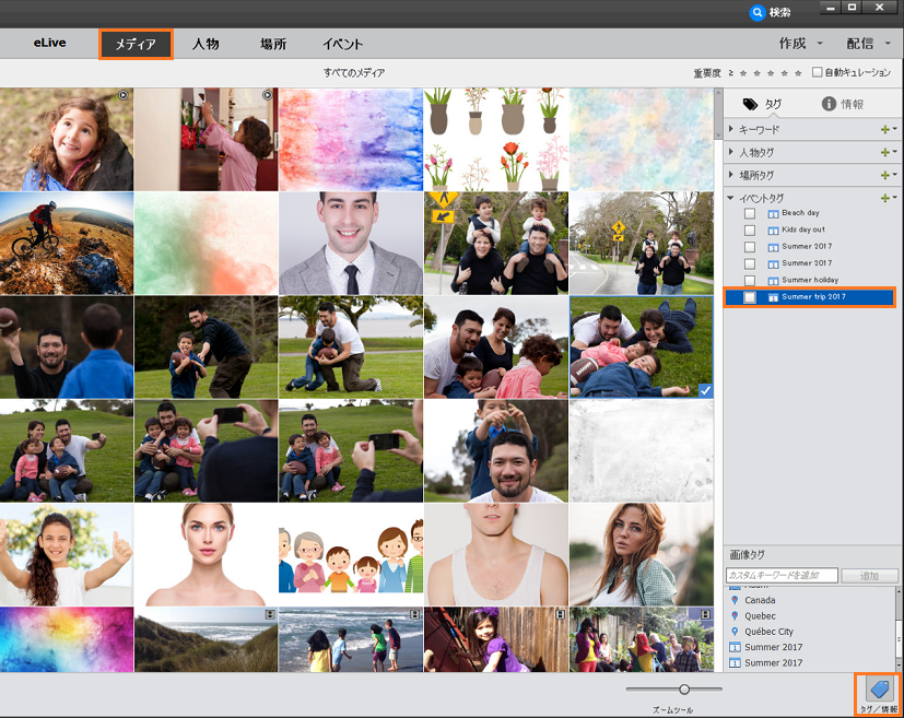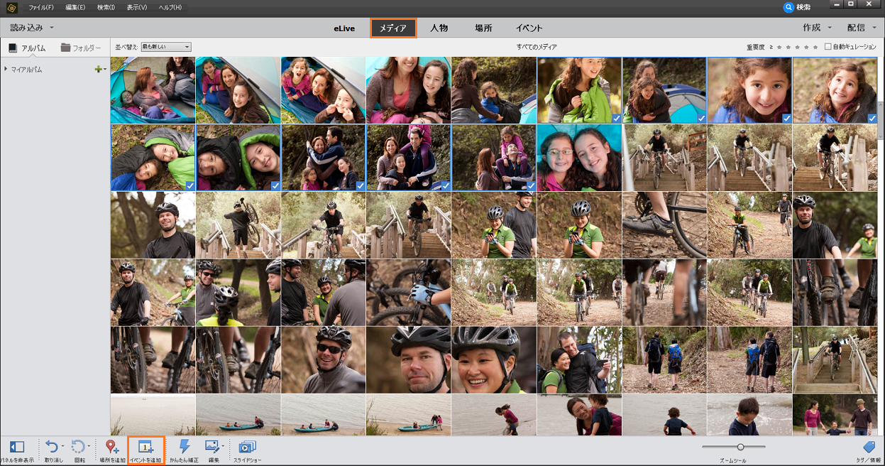 写真やビデオなどのメディアファイルにイベント情報を追加しましょう。イベント別に整理されて、簡単に表示できるようになり、イベントの思い出が生き生きとよみがえります。