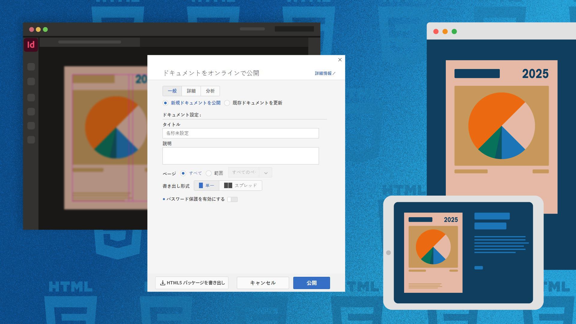 InDesign ドキュメントを HTML5 パッケージとして書き出すと、web サイトやサーバー上で簡単にホストでき、SEO とアクセシビリティが向上します。テキストを HTML テキストまたは SVG タグとして書き出すことを選択できます。