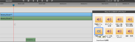 エキスパートビュータイムラインの音楽パネルから、「SmartSound を使用」をクリックします。
