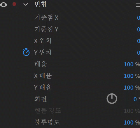 - 키프레임 고정 전환: 다음 키프레임에 도달할 때까지 속성 값을 현재 키프레임 값으로 고정합니다.