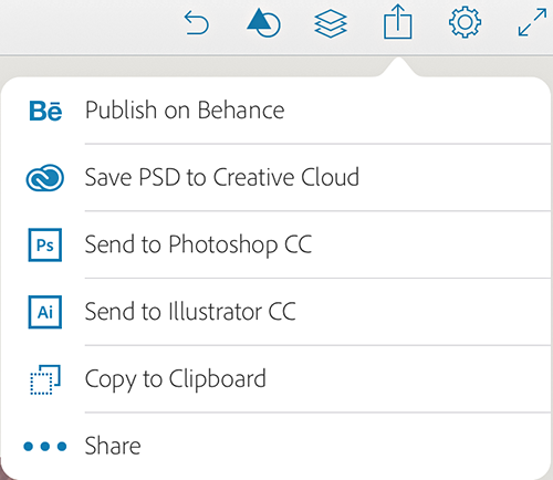 모양을 컬렉션의 적절한 Creative Cloud 라이브러리에 저장하거나 [Photoshop으로 보내기] 또는 [Illustrator CC로 보내기] 옵션을 사용하여 모양을 레이어 벡터 이미지로 변환합니다.