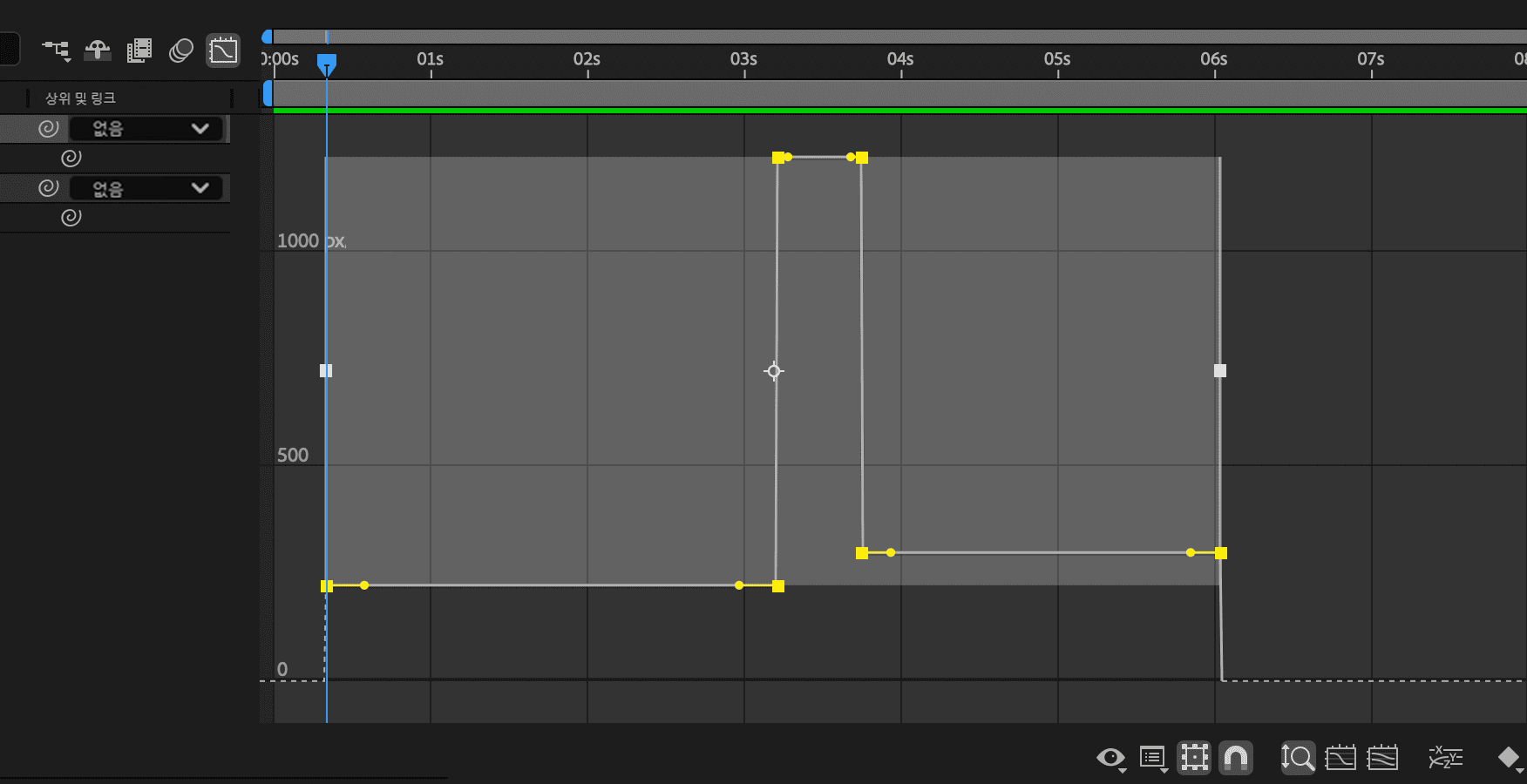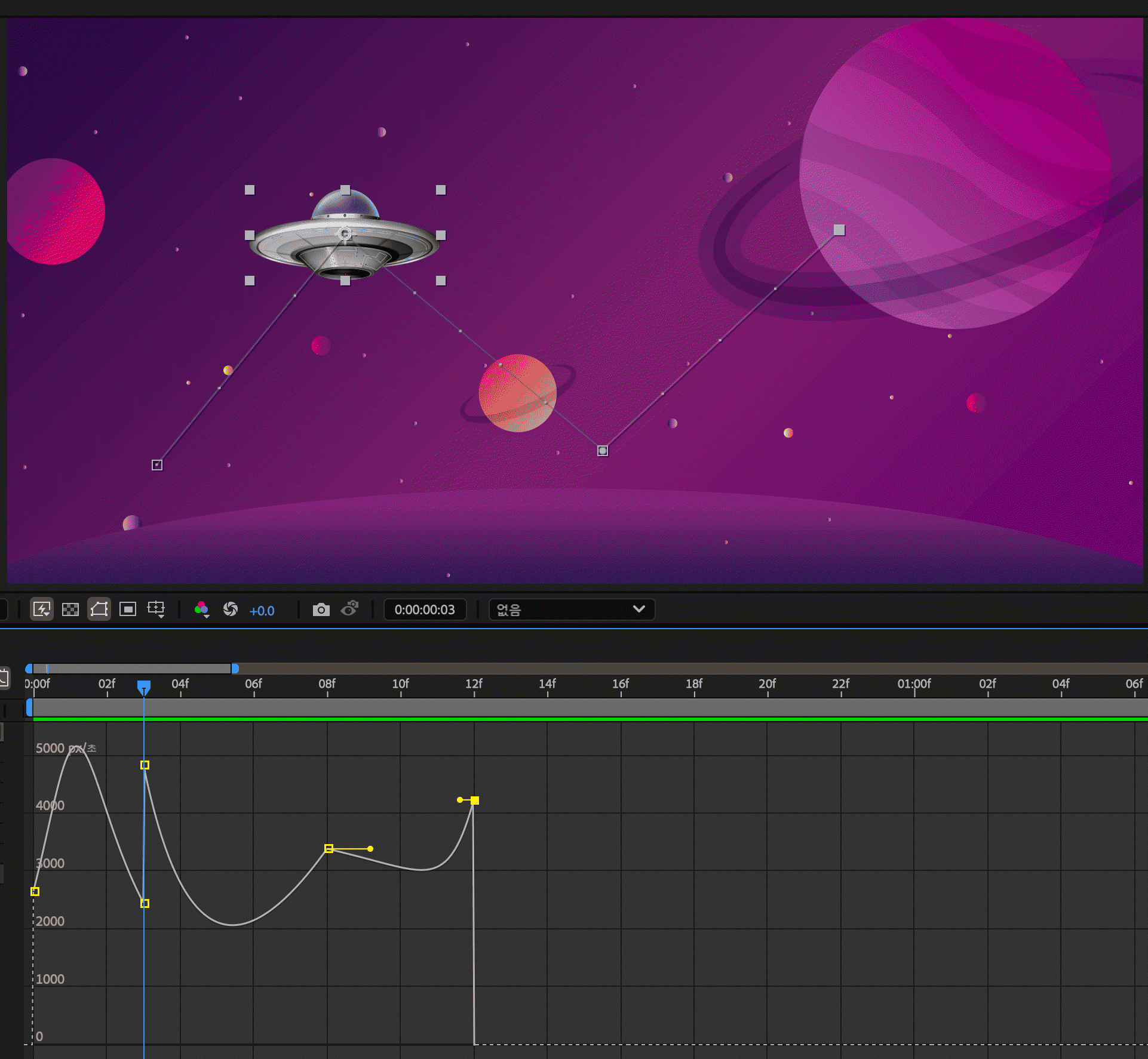 키프레임 사이의 시간적 거리가 가까울수록 레이어 속도가 높아집니다.