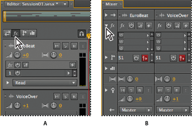 [믹서] 왼쪽에서 하나 이상의 컨트롤에 대한 [표시/숨기기] 삼각형을 클릭합니다.
