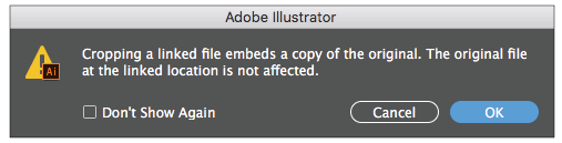 4. 링크된 이미지를 사용하여 작업하는 경우 링크된 파일이 자르기 후 임베드되었다는 메시지가 Illustrator에 표시됩니다. 확인을 클릭하여 계속합니다.