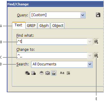 [텍스트], [GREP] 또는 다른 탭을 선택하여 검색을 수행합니다.
