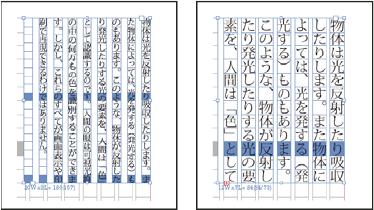 격자 서식을 적용하면 격자 서식 특성이 프레임 격자의 텍스트에 대해 설정되지만, [문자] 또는 [단락] 스타일이 지정된 텍스트 또는 [문자] 또는 [단락] 패널에서 개별적으로 설정을 수정한 텍스트에 대해서는 특성이 설정되지 않습니다.