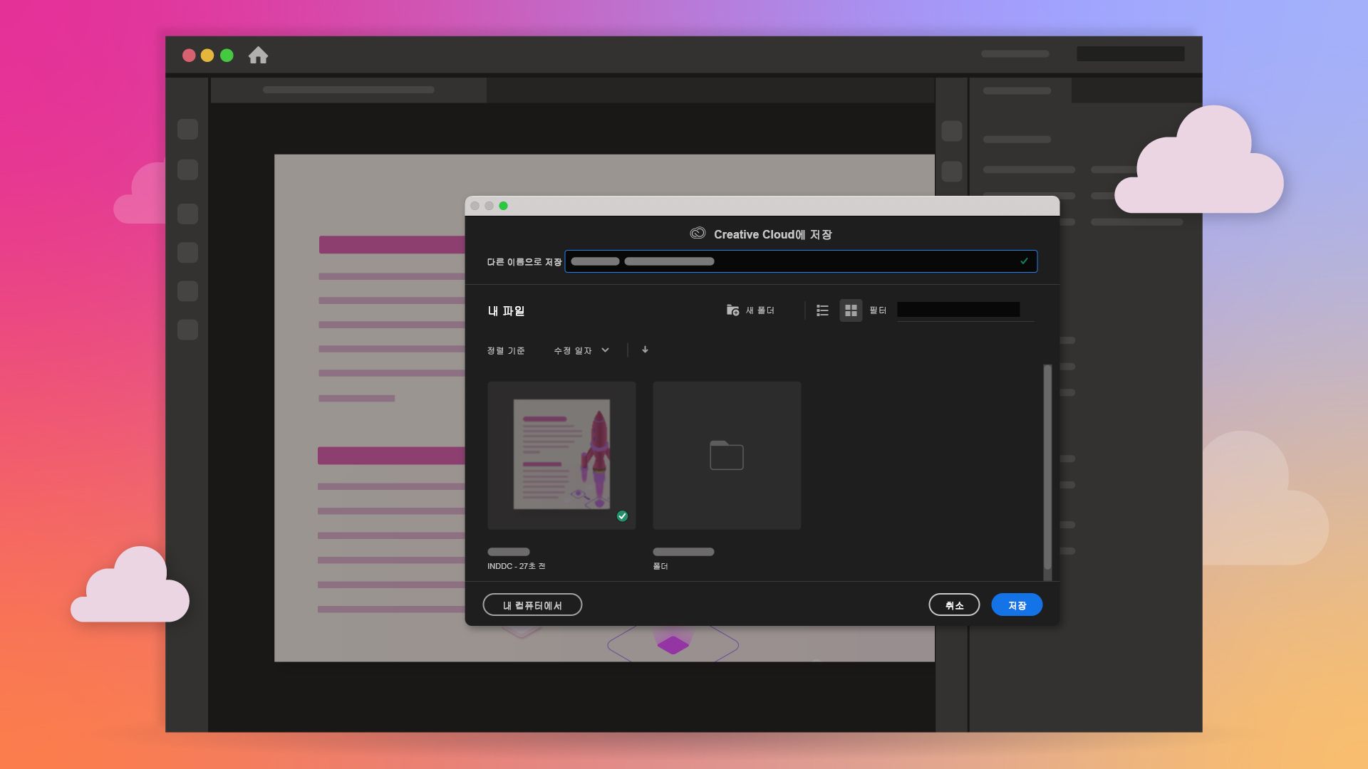 InDesign 데스크탑 애플리케이션에서 클라우드 문서를 편집할 공동 작업자를 초대합니다. 공개 링크를 만들어 언제 어디서나 클라우드 문서를 볼 수도 있습니다.