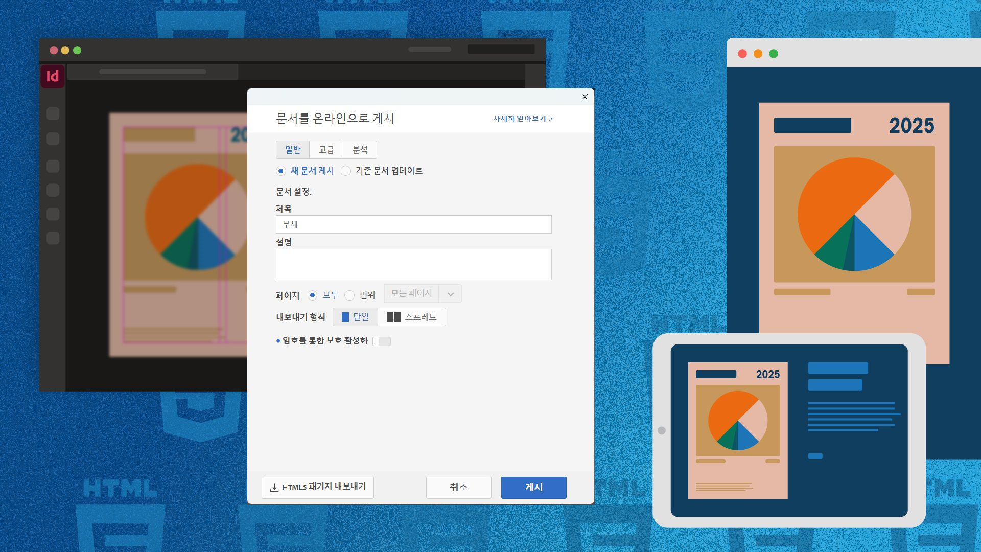 InDesign 문서 HTML5 패키지로 내보내기를 사용하면 웹 사이트나 서버에서 쉽게 호스팅할 수 있으므로 SEO 및 접근성을 향상할 수 있습니다. HTML 텍스트 또는 SVG 태그로 텍스트를 내보낼 수 있습니다.
