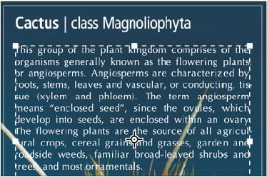 참고:편집 모드에서 포인트 문자를 변형할 수 있습니다. Ctrl 키(Windows) 또는 Command 키(Mac OS)를 누르고 있으면 문자 주위에 테두리 상자가 나타납니다.