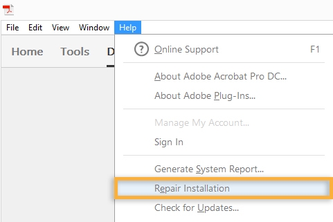 قد يكون هناك تلف في Reader أو Acrobat. عملية إصلاح التثبيت هي حماية سريعة تعتمد على استكشاف الأخطاء وإصلاحها.