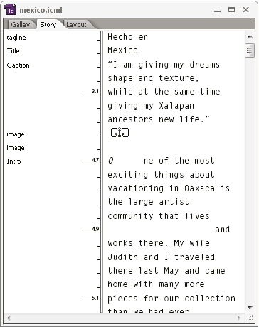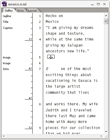 طريقة العرض Story يتم فتحها افتراضيًا عند إنشاء مجموعة نصية جديدة في InCopy.