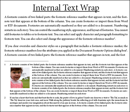 في المثال الموضح أدناه، فإن الصورة ليست جزءًا من الحاشية السفلية، ولكن النص ينضبط بانسيابية حول الكائن.
