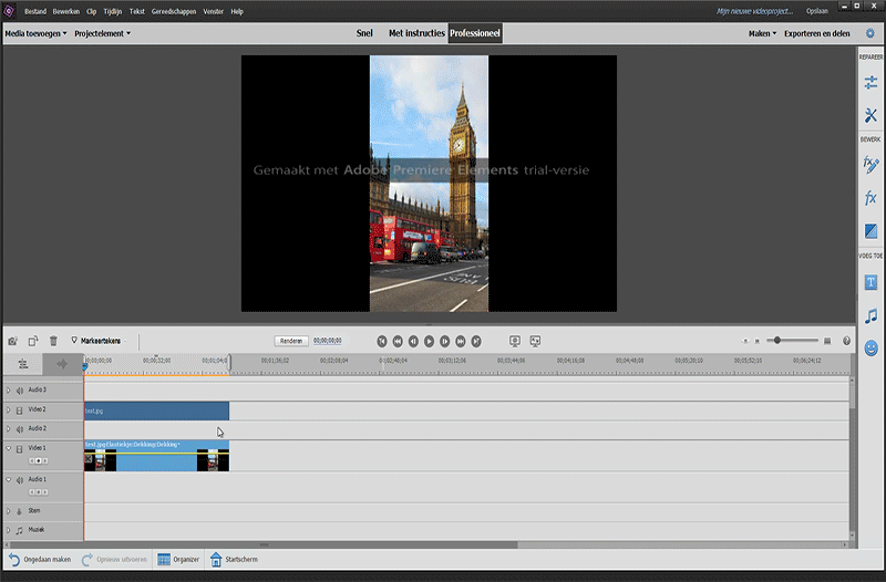 In deze Bewerken met instructies-functie wordt stapsgewijs beschreven hoe u de zwarte balken rondom de video kunt invullen, zodat het beeld volledig past in het videoframe.