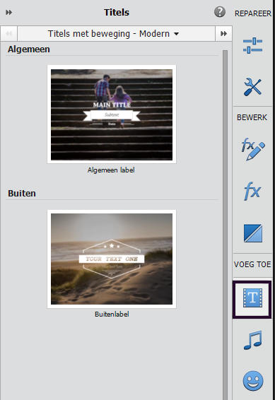 Selecteer Met instructies > Grappige bewerkingen > Een frame stilzetten en een titel met beweging toevoegen.
