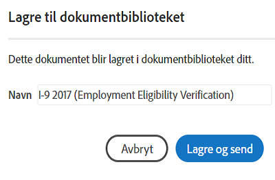 Når Lagre og send-knappen er trykket på lagres dokumentet som et dokument til ditt personlige bibliotek.