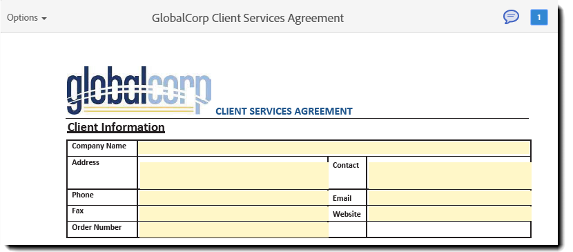 Administratorer på kontonivå kan konfigurere innstillingen ved å gå til Konto > Kontoinnstillinger > Signaturpreferanser > Led mottakerne gjennom skjemafelt når de fyller ut og signerer avtaler