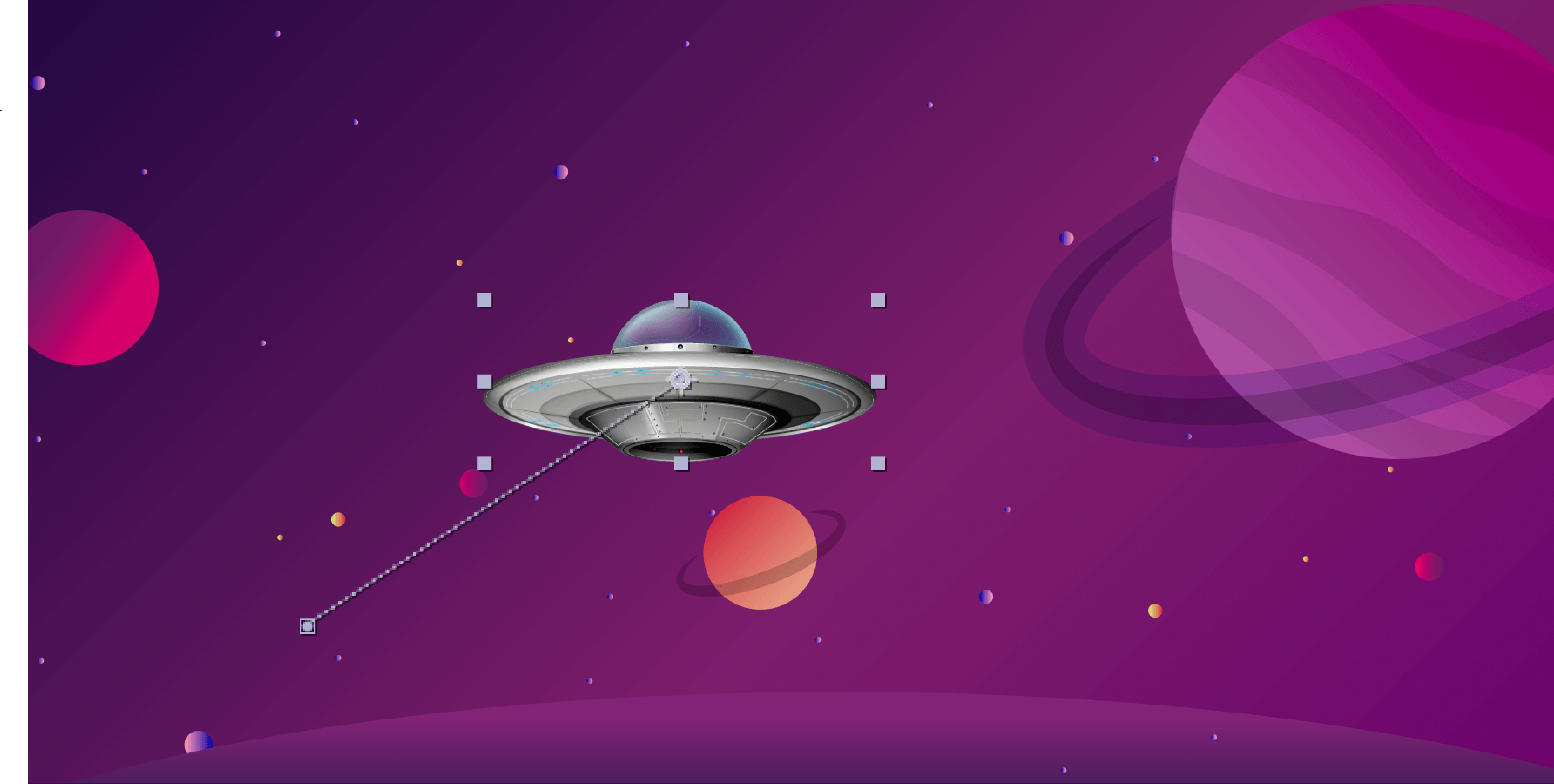No painel Composição ou Camada, o espaçamento entre pontos em um caminho do movimento indica a velocidade. Cada ponto representa um quadro, com base na taxa de quadros da composição. Um espaçamento uniforme indica uma velocidade constante, enquanto um espaçamento mais amplo indica uma velocidade mais alta. Os quadros-chave que usam interpolação de Retenção não exibem pontos, porque não há nenhuma transição intermediária entre os valores dos quadros-chave. A camada simplesmente aparece na posição especificada pelo quadro-chave seguinte.