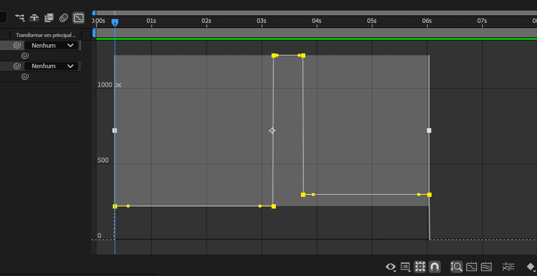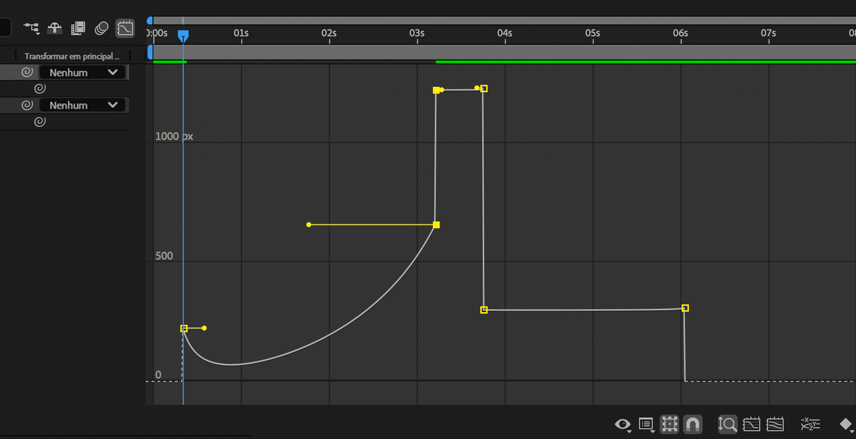 Mover as alças para cima aumenta a velocidade de alteração da propriedade no quadro-chave selecionado. Mover as alças para cima aumenta a velocidade de alteração da propriedade no quadro-chave selecionado. -