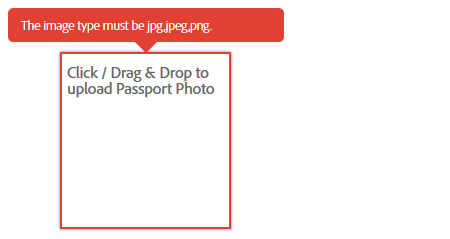 Observe que a sequência de caracteres Clique / Arraste e solte para fazer upload não pode ser editada.