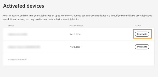 Выполните вход в учетную запись на странице https://account.adobe.com/activated-devices.